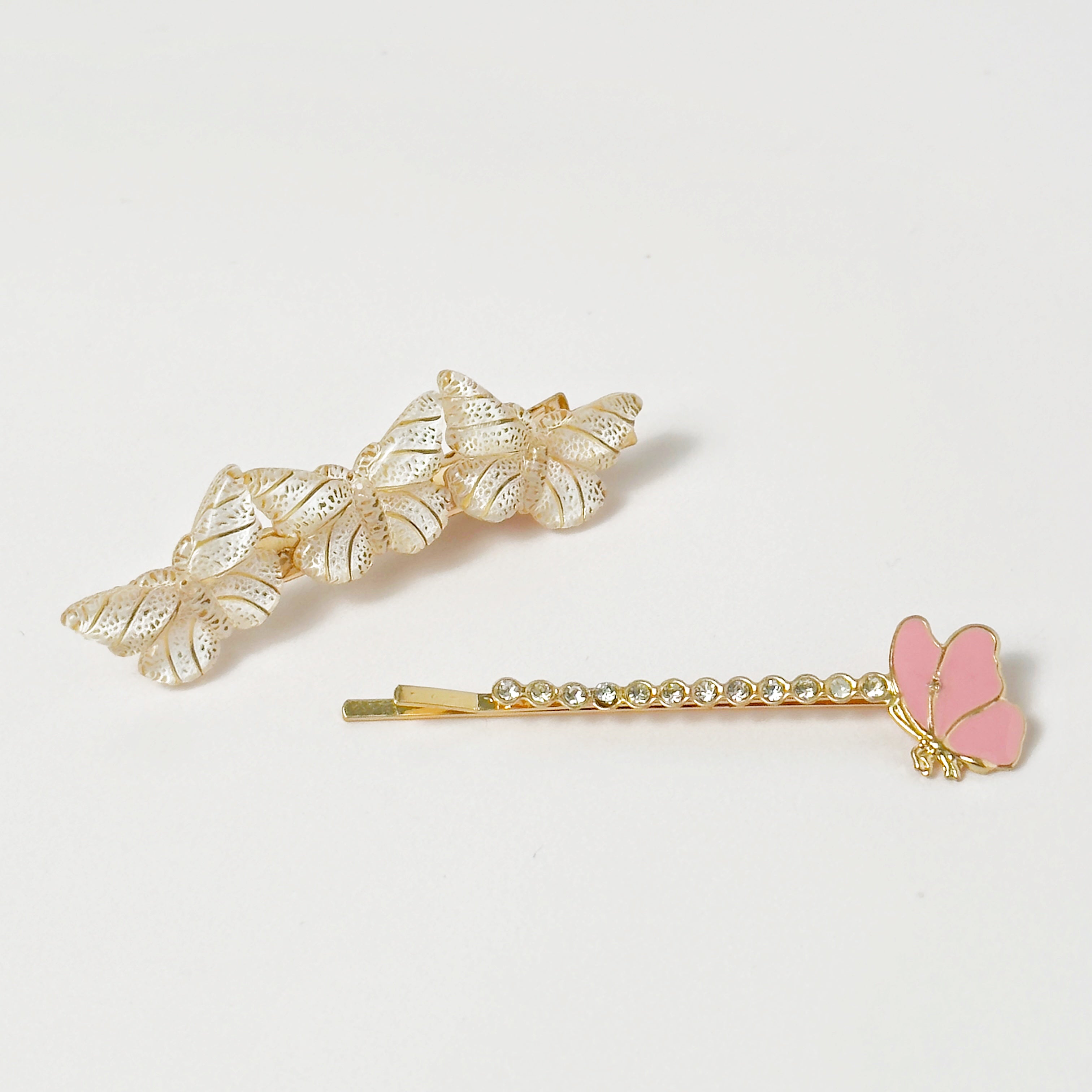 Complete your look with our Butterfly Bliss Hair Accessory Duo. This charming combo features a butterfly clip and a matching hairpin, adorned with delicate butterfly motifs. Add a touch of whimsy and elegance to your hairstyle with this enchanting duo. Perfect for adding a playful and feminine flair to any ensemble.
