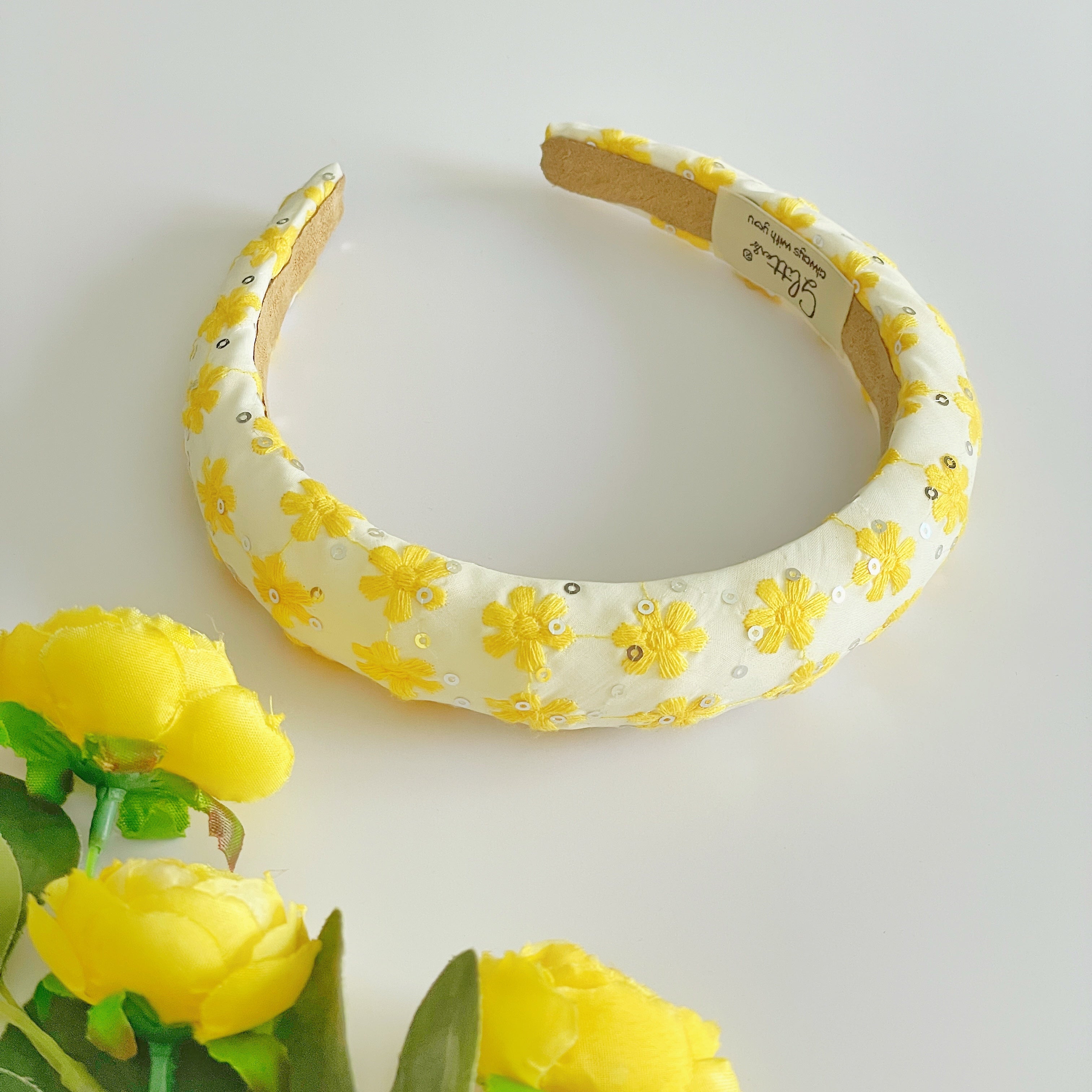 Embrace the beauty of nature with our lovely hairband adorned with delicate yellow flowers.