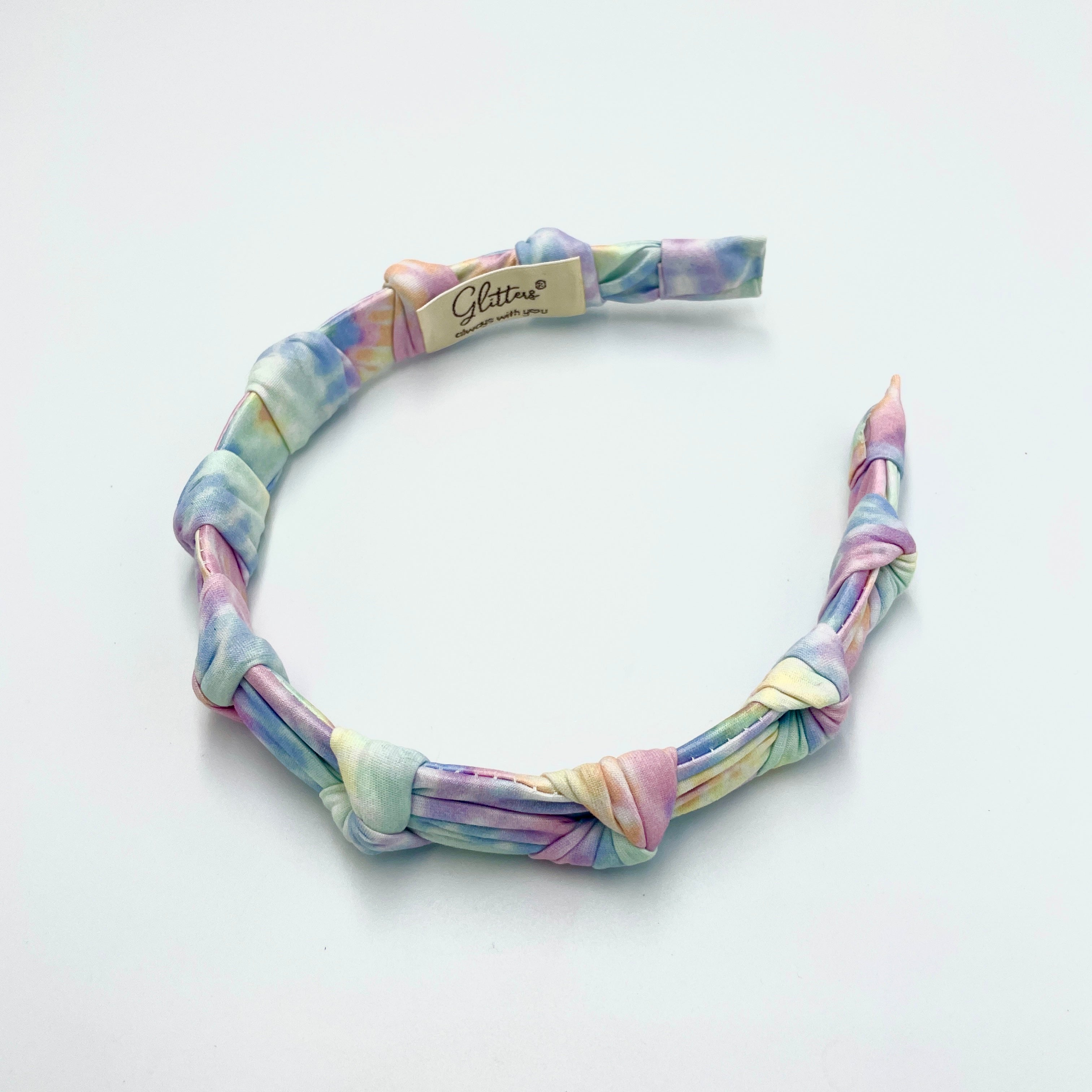 This colorful headband is perfect for adding a pop of fun to any hairstyle. Featuring a unique tie-dye design with plenty of knotted texture, this headband is sure to make a statement.