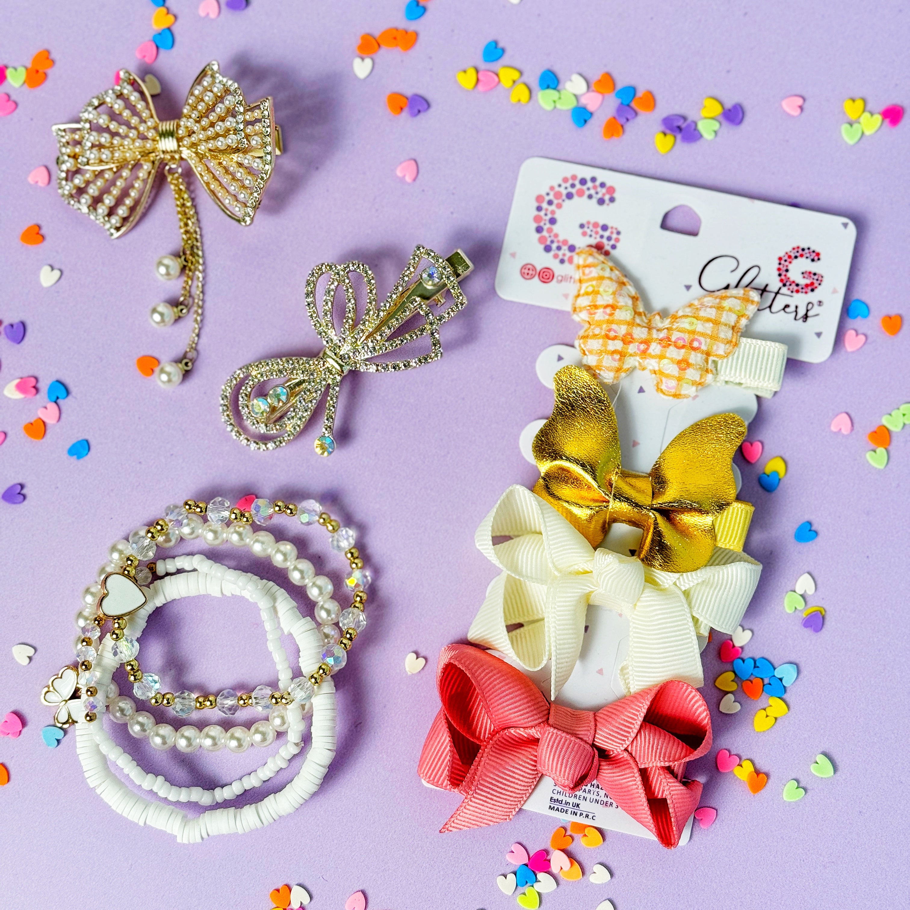 Discover our Charming Accessories Collection. From the whimsical Butterfly Dreams to the timeless Pearl Elegance and chic Bow Stone Clip, each piece is crafted with care. Elevate your style effortlessly with these exquisite accessories, perfect for adding charm to any ensemble.