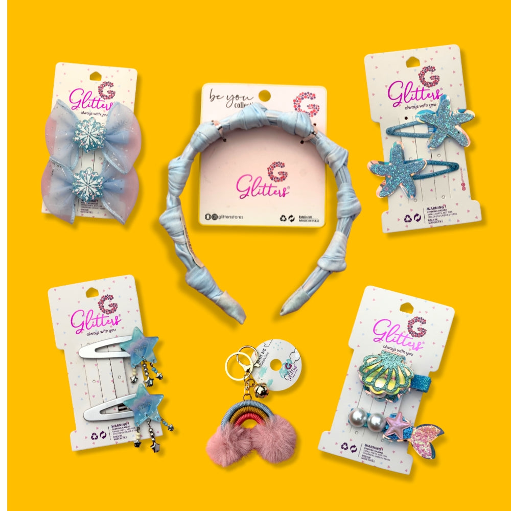 Dive into a world of elegance and sparkle with the Glitters Ocean Series Hair Accessories Set! Inspired by the beauty of the sea, this enchanting collection features mermaid-themed clips, glittery starfish hairpins, and a satin-wrapped headband in dreamy oceanic blue. Designed for girls, teens, and anyone who loves marine-inspired fashion, this set adds a whimsical charm to every hairstyle.