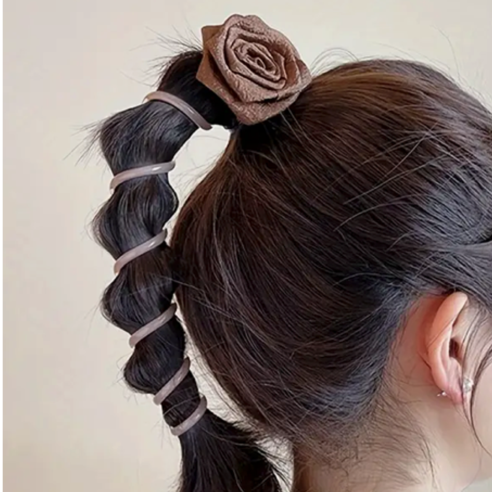 Upgrade your hairstyling options with simplicity. Utilize the Flower Braided Coil to effortlessly fashion beautiful ponytails and elegant bubble braids.