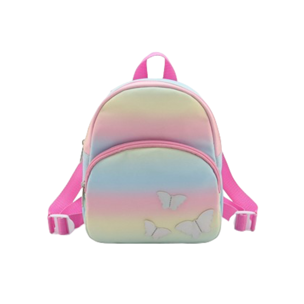 Elevate your style with our Rainbow Flutter Mini Backpack. This charming accessory features a mesmerizing rainbow gradient design adorned with delicate butterfly motifs. Perfect for adding a whimsical touch to your outfit while carrying your essentials in style.