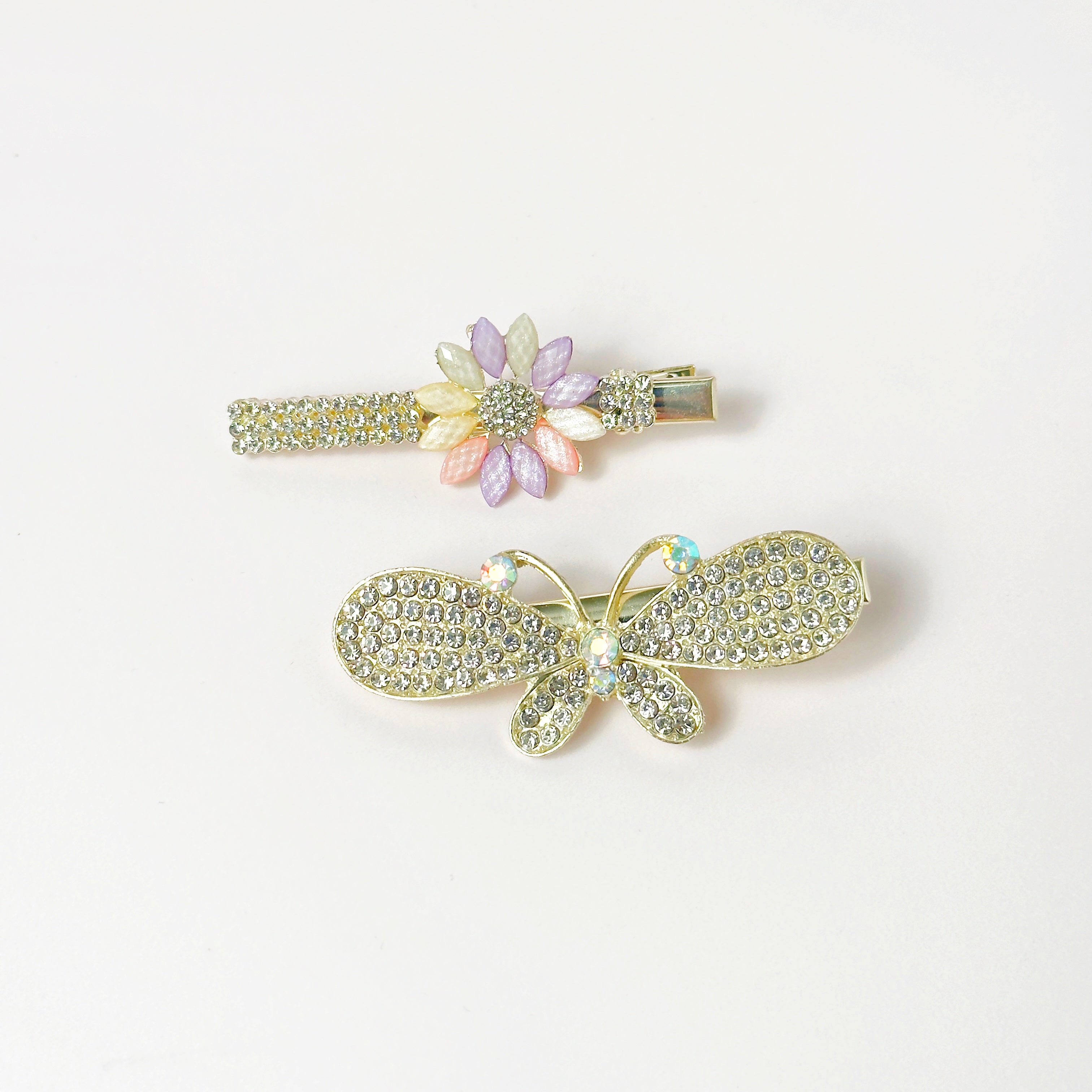 Complete your look with our Stone Bow & Flower Clip Duo. This charming set features a stone bow clip for a touch of elegance and a colorful stone flower clip for a pop of color. Effortlessly elevate your hairstyle with this versatile duo, perfect for adding flair to any ensemble.