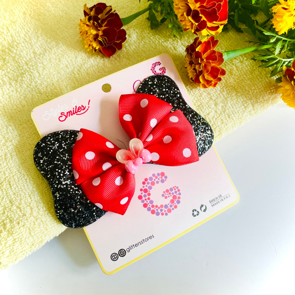 Make a bold statement with this oversized bow. Perfect for adding a touch of elegance and glamour to any outfit.