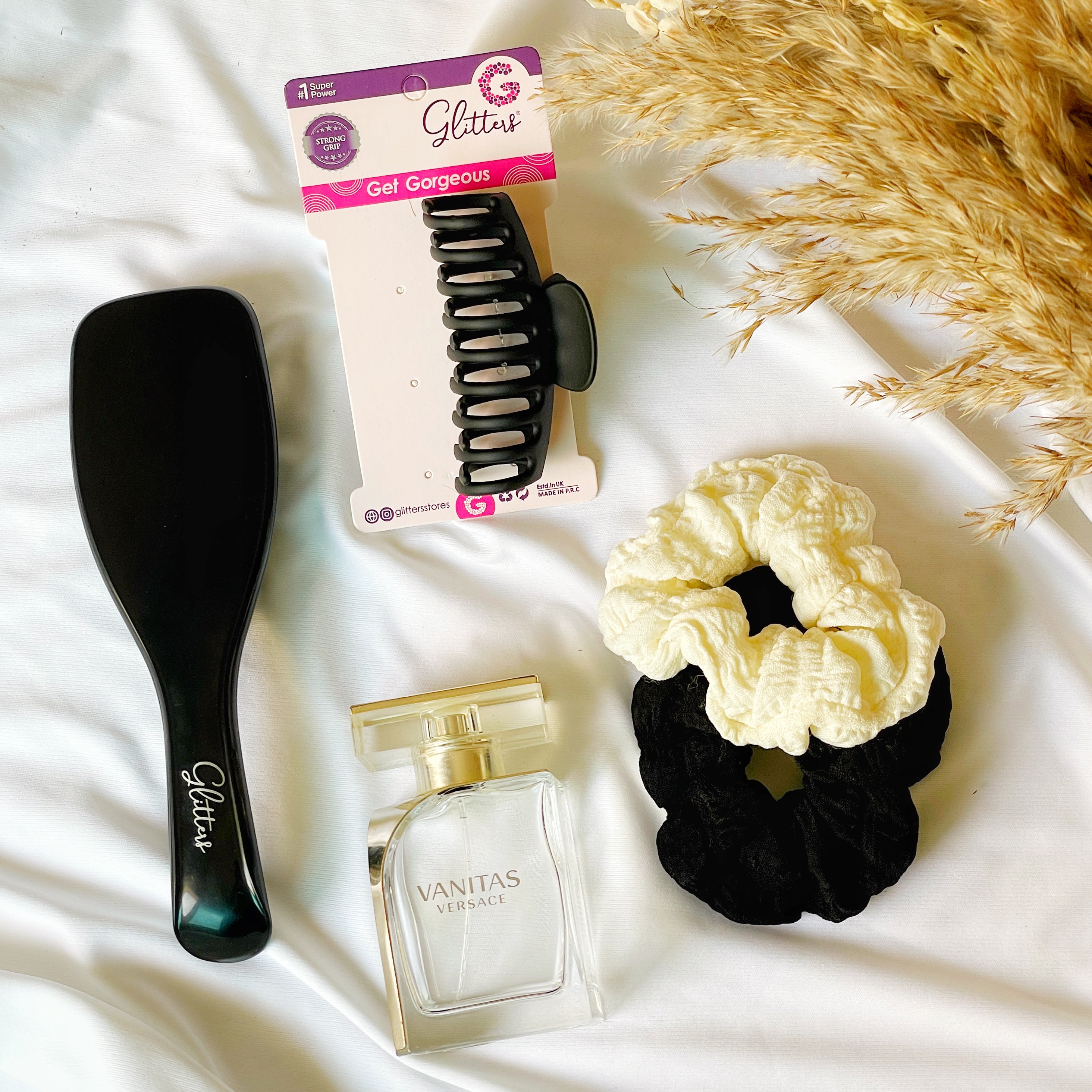 Our Luxury Gift with Free Gift Box is the perfect gift for anyone who loves to keep their hair looking great. With a high-quality detangling brush, a curved claw clip, and black and cream texture scrunchies, this gift box is both practical and stylish. Order now and give the gift of great hair care!